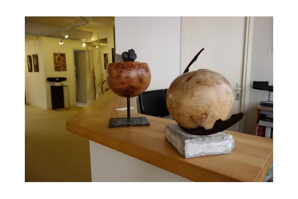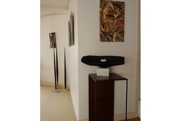 Aaris Deshayes et Lambert nous proposent un jeu des formes où photographies et sculptures entrent en écho, conduisant le regard à cheminer entre bois et plombs, pierre et terres, surfaces et matières.