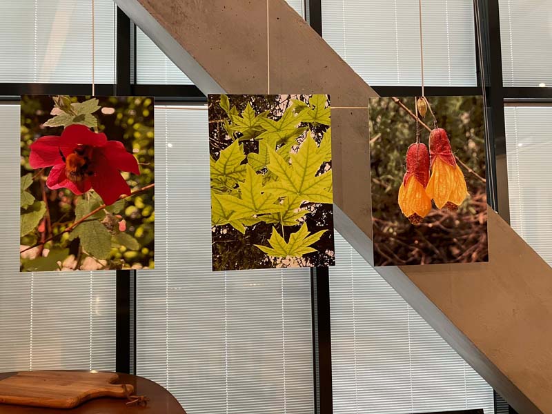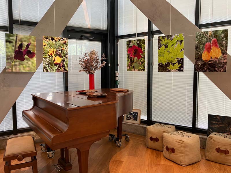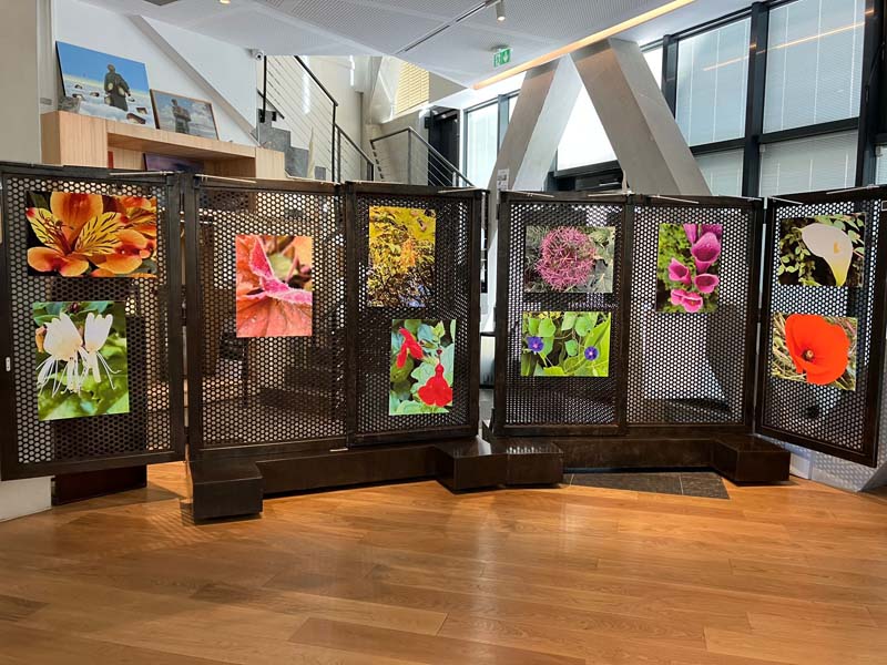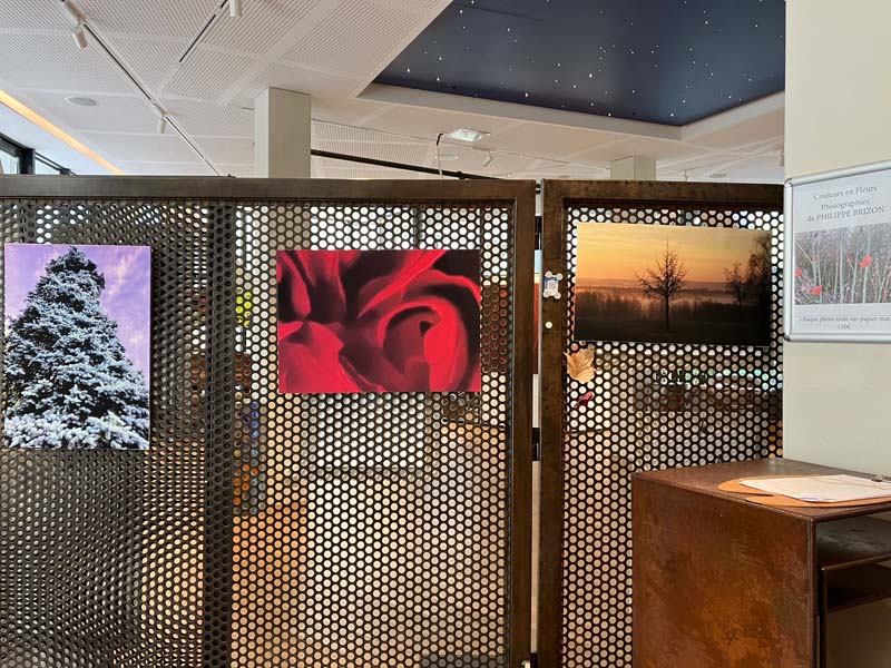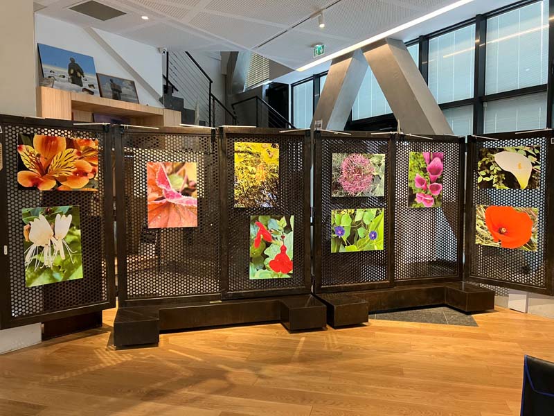 Cette exposition présente 15 photographies qui présentent des couleurs du violet au rouge, elles sont portées par des végétaux lors du printemps, d’où le titre « couleurs en fleurs »